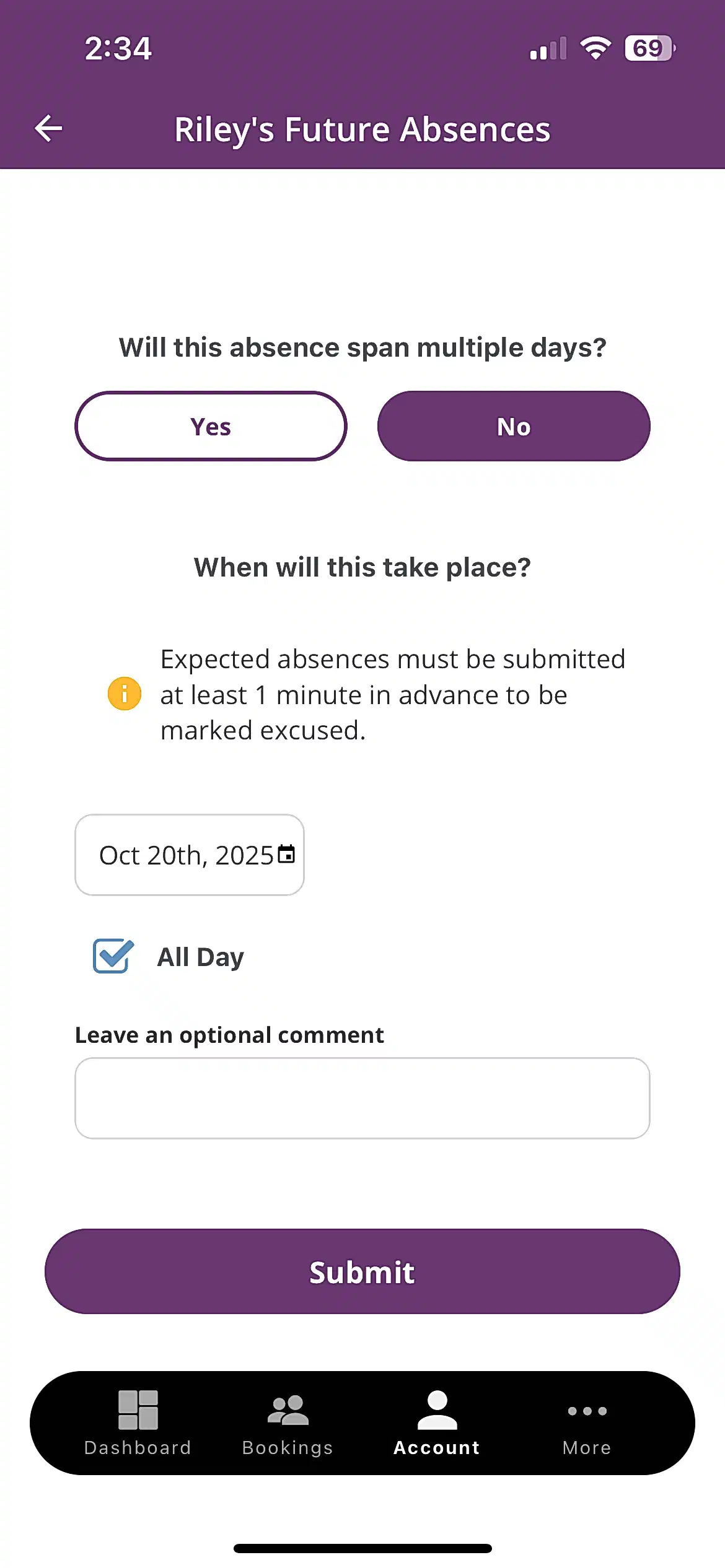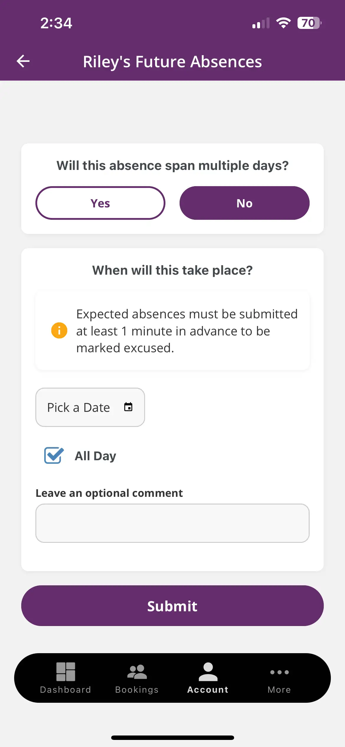 Mark your child absent